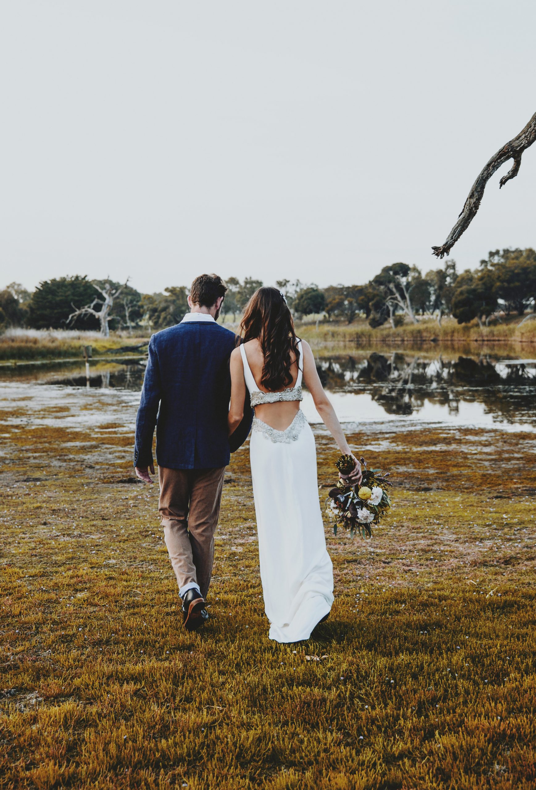 CREDITS Photos Enchanted Wedding Photography // Stylist Peppa & Peach // Bridal gowns Kara Jade Designs // Venue The Minya Winery // Hair and makeup Alana Waldron // Flowers Blooms by Bridget // Cake Miranda Jane Cakes // Jewellery Meadowlark // Mens accessories Roger David // Jars Jungle Jars // Models Chadwick Models