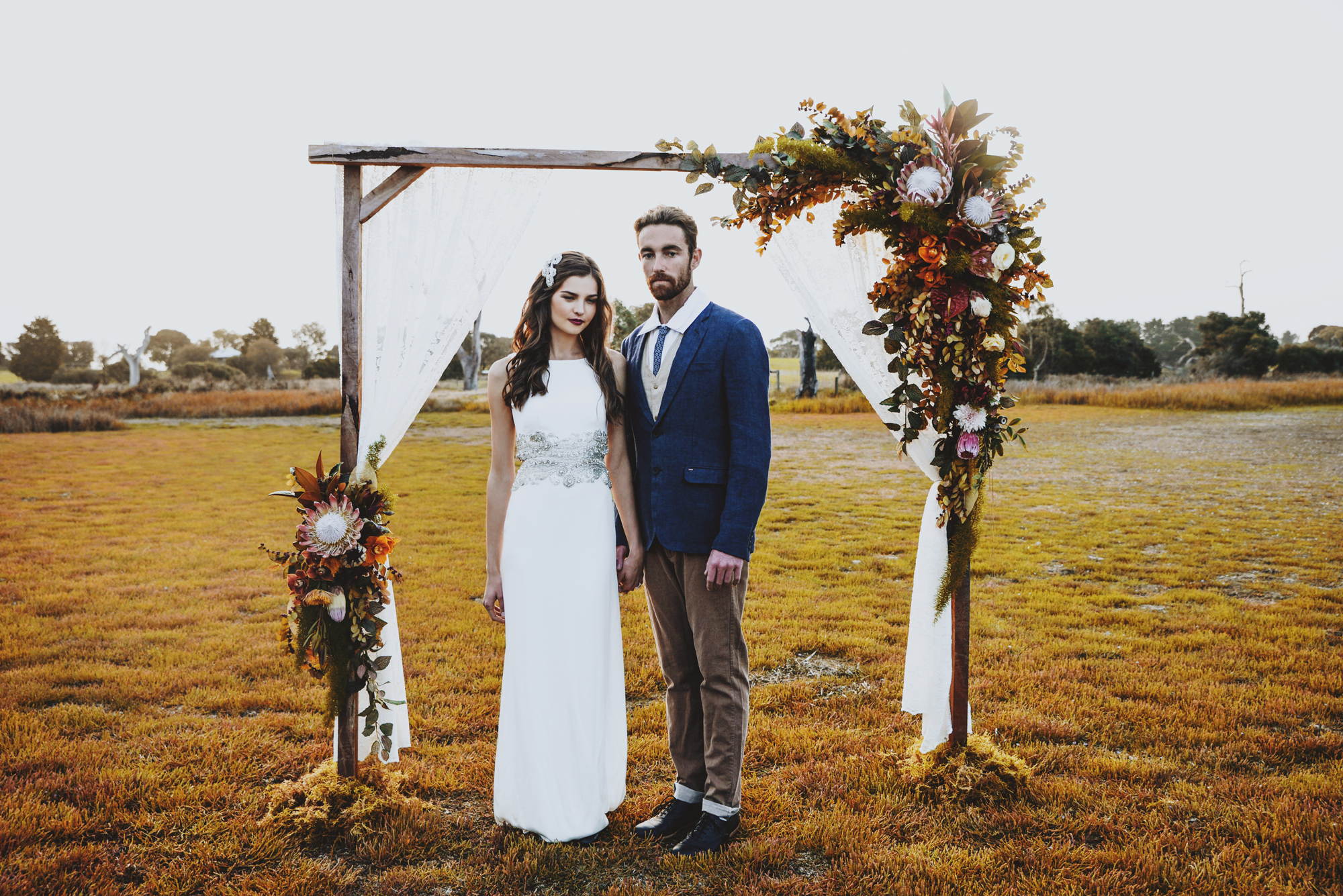 Shining the spotlight on native floral arrangements, Bridget from Blooms by Bridget and stylist Peppa & Peach again joined forces with Enchanted Wedding Photography and makeup artist Alana Waldron to create these beautiful, inspiring images you see before you.